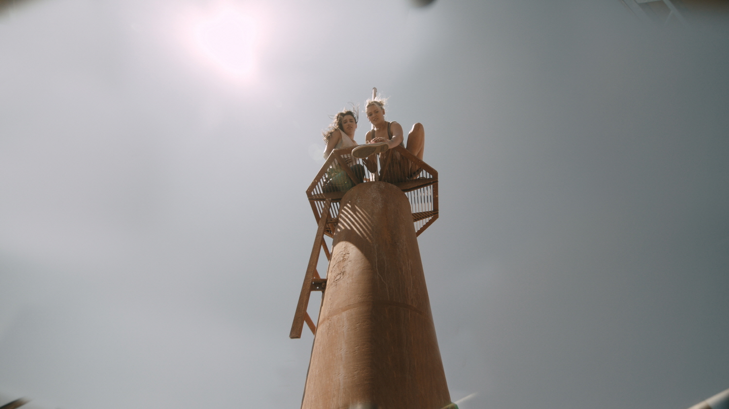 노후된 사다리가 끊어지면서 두 사람은 타워 꼭대기에 갇히게 됩니다.