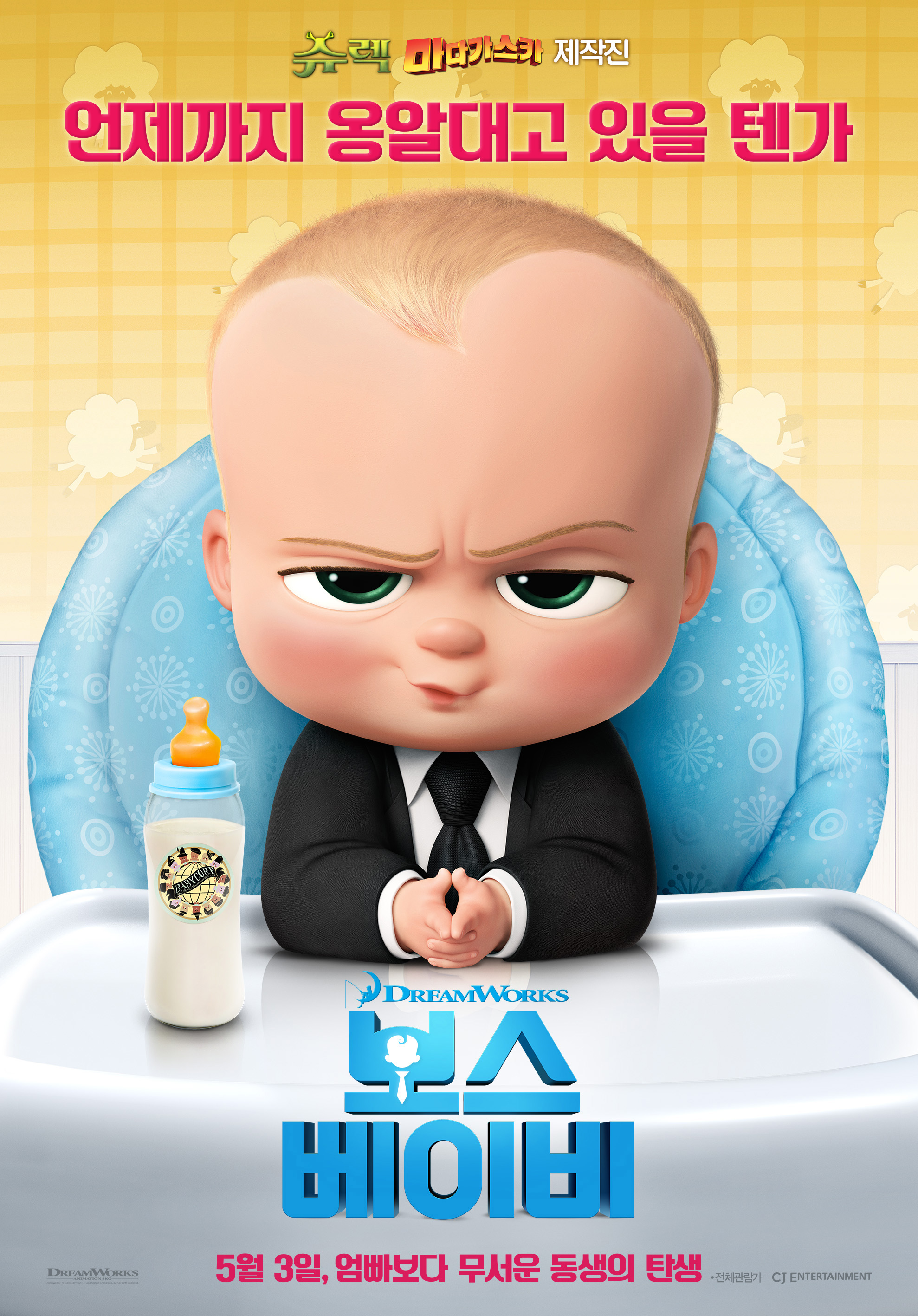 '보스 베이비'는 '베이비 주식회사' 비밀 임무를 위해 파견 나온 아기입니다. 최근 '퍼피 주식회사'에 밀려 출산율이 떨어지자 이에 상대하기 위해 파견을 나온 것입니다.