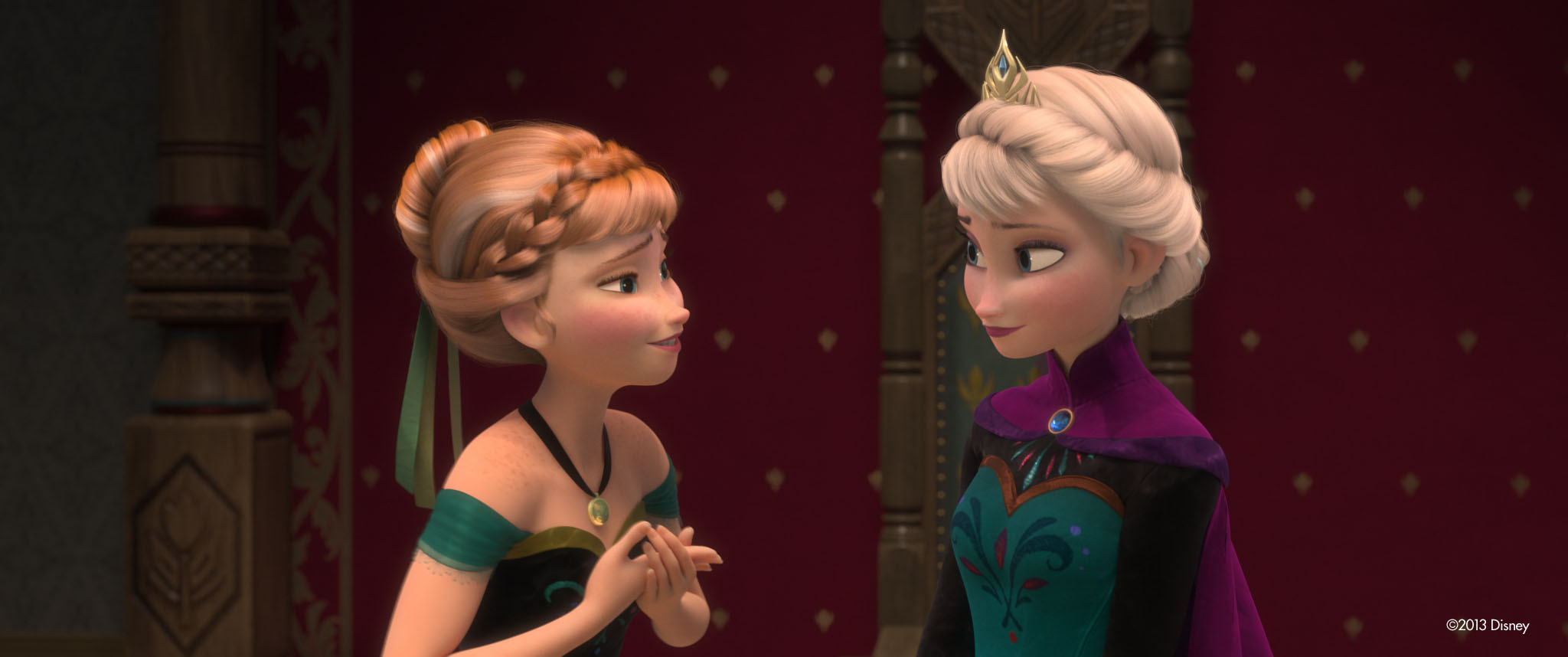 '엘사'와 '안나'는 둘 도 없이 친했던 자매였습니다. 어릴 적엔 둘이 눈사람도 만들고 밖에 나가서 뛰어노는 걸 즐겼지만, 이젠 더 이상 '엘사'는 방문 밖을 나오려 하지 않습니다.
