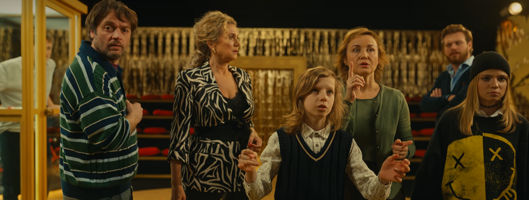 ‘눈보라 속 고립된 으리으리한 대저택’, ‘수상한 가족들’, ‘죽은 줄 알았던 인물의 반전’, ‘유산을 둘러싼 심리전’ 등 추리 영화의 고전적인 요소는 모두 갖추고 있지만, 이야기의 중심은 미스터리 해결보다는 인물 간의 갈등과 코믹한 상황에 더 초점을 맞춥니다.가족이라는 이름으로 모인 이들이 각자의 욕망과 과거의 상처를 드러내며 유산을 둘러싸고 충돌하는 모습은 한편으로 씁쓸하면서도, 과장된 설정 덕분에 웃음을 유발하기도 합니다.